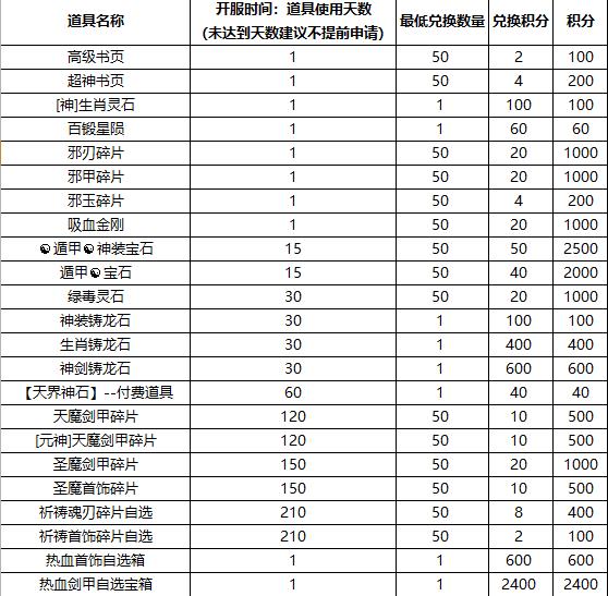 3、线下单日返利礼包和积分道具返利仅可二选一,不叠加参与两个活动。若多次同时申请或申请错误,则取消参与后续返利(玩家账号满足积分道具返利条件可自由选择参与线下单日返利礼包或积分道具返利,仅支持7天内充值订单联系页游VIP点击快速添加微信申请)可兑换道具表格内容根据版本进度不定期更新,以咨询后实际到账为准!